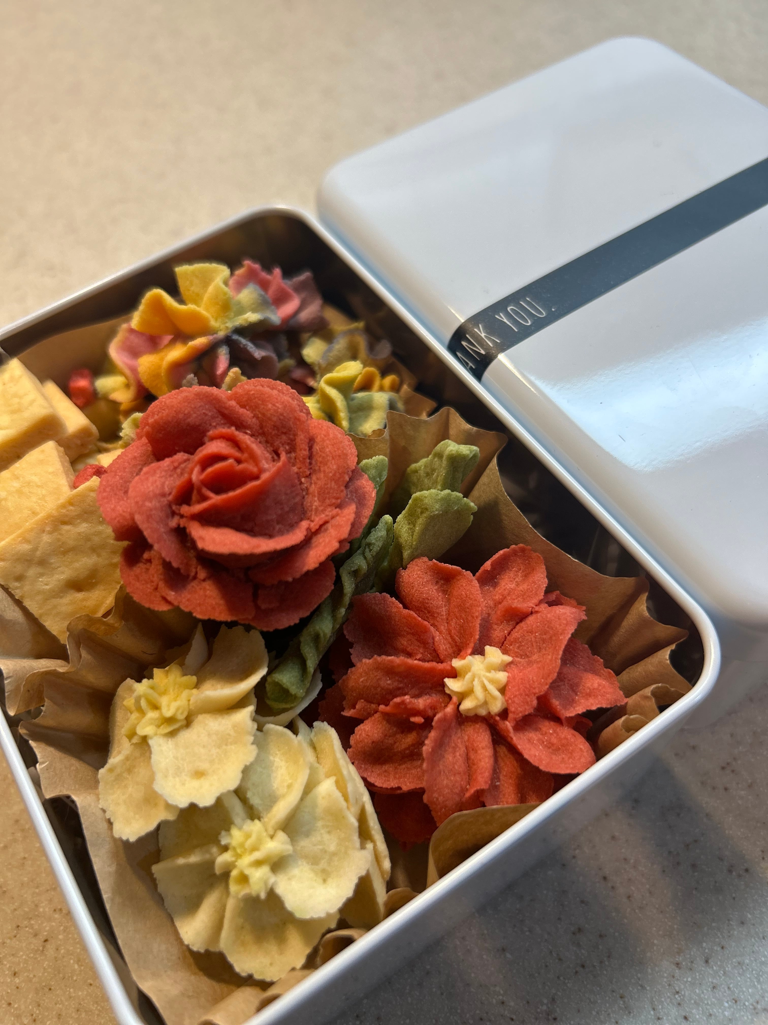 こちらは、プレゼント用として白い缶に入れてみました。